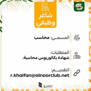 إعلان وظيفي – محاسب في نادي النور الرياضي